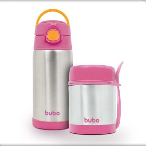 Kit Garrafa e Pote Térmico Inox Buba – Cor Rosa