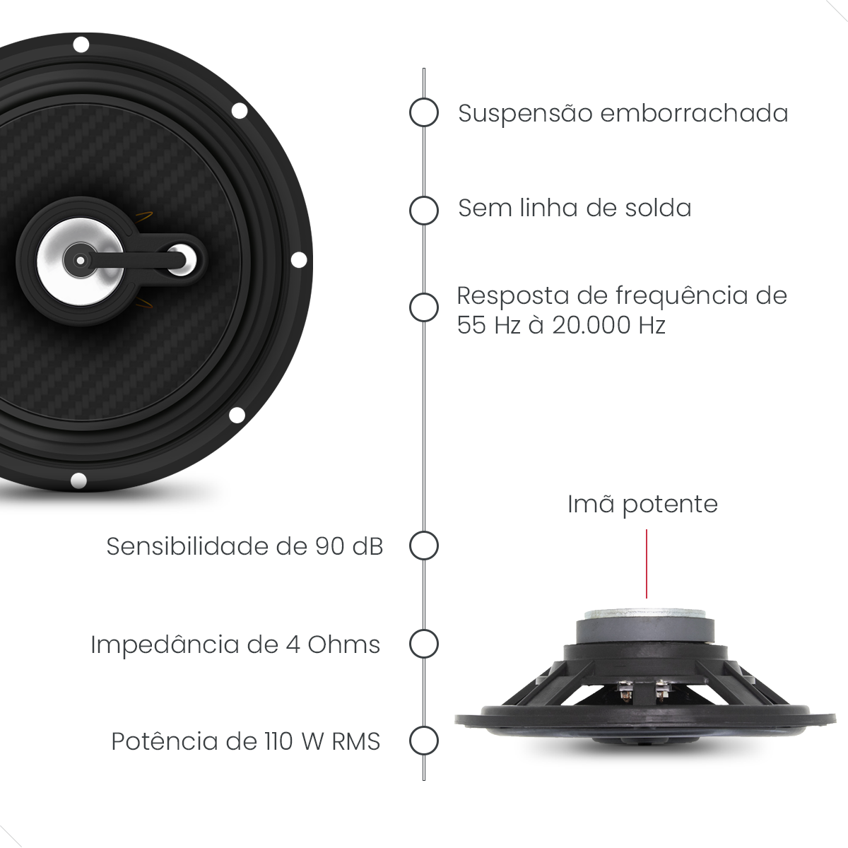 2 Pares de Alto-falantes Triaxial 110W RMS 4 Ohms