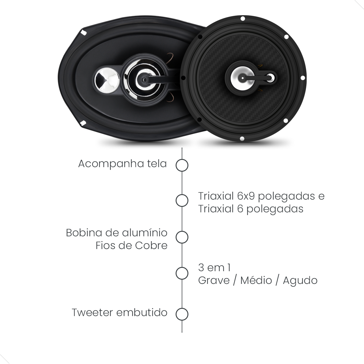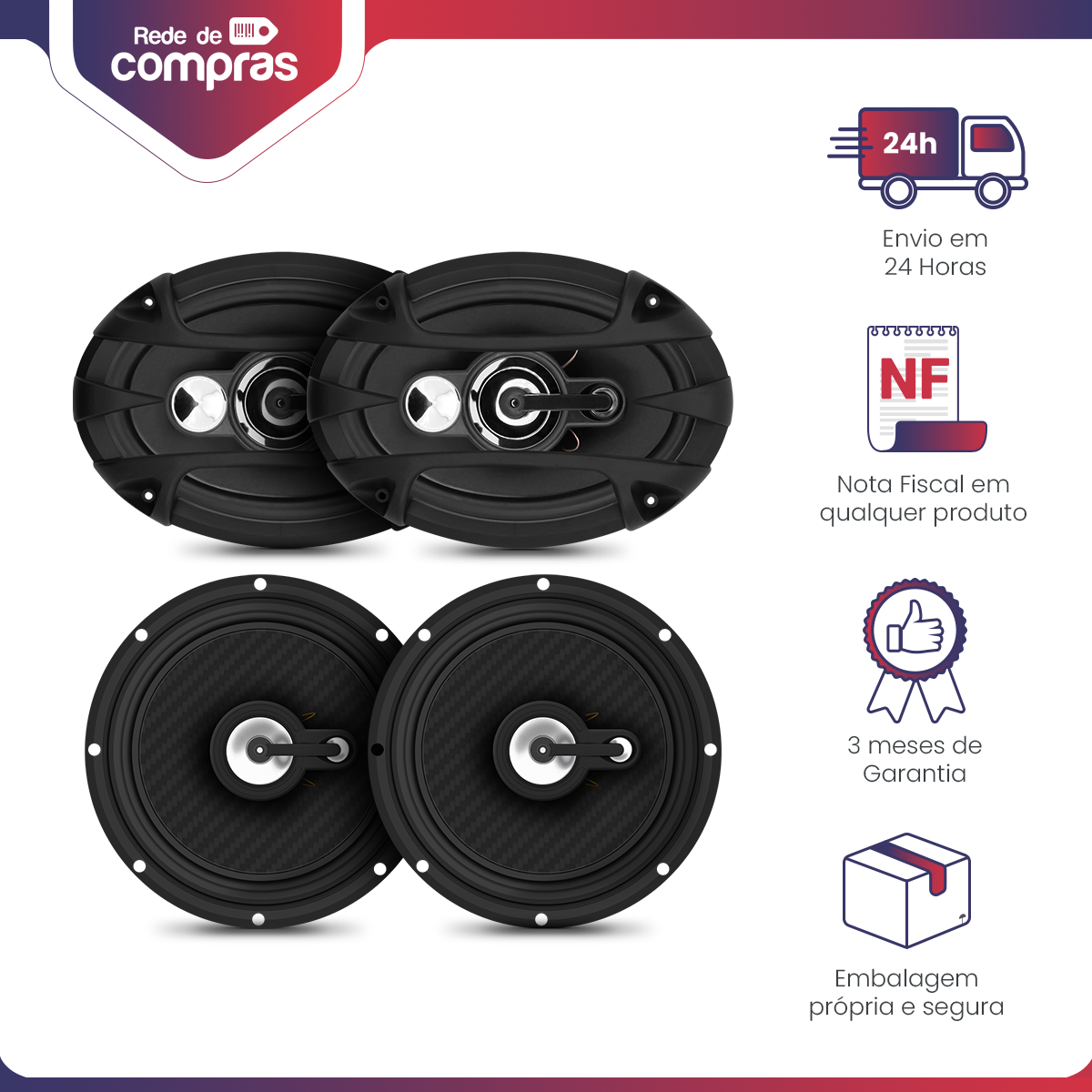 Kit Fácil com 2 Pares de Alto Falantes: 1 Par de 6 Polegadas + 1 Par de 6×9 Polegadas