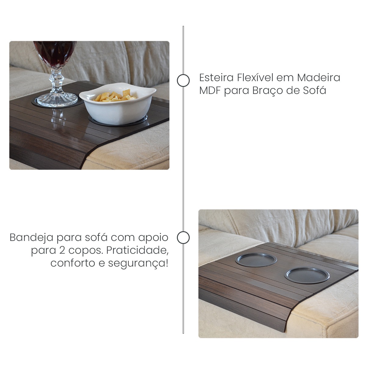 Quem nunca sentou em seu sofá e ficou procurando um lugar para apoiar o copo? Esta Bandeja para Sofá foi desenvolvida para suportar até dois copos e dar um toque de elegância na sua decoração, renovando o estilo do seu sofá.