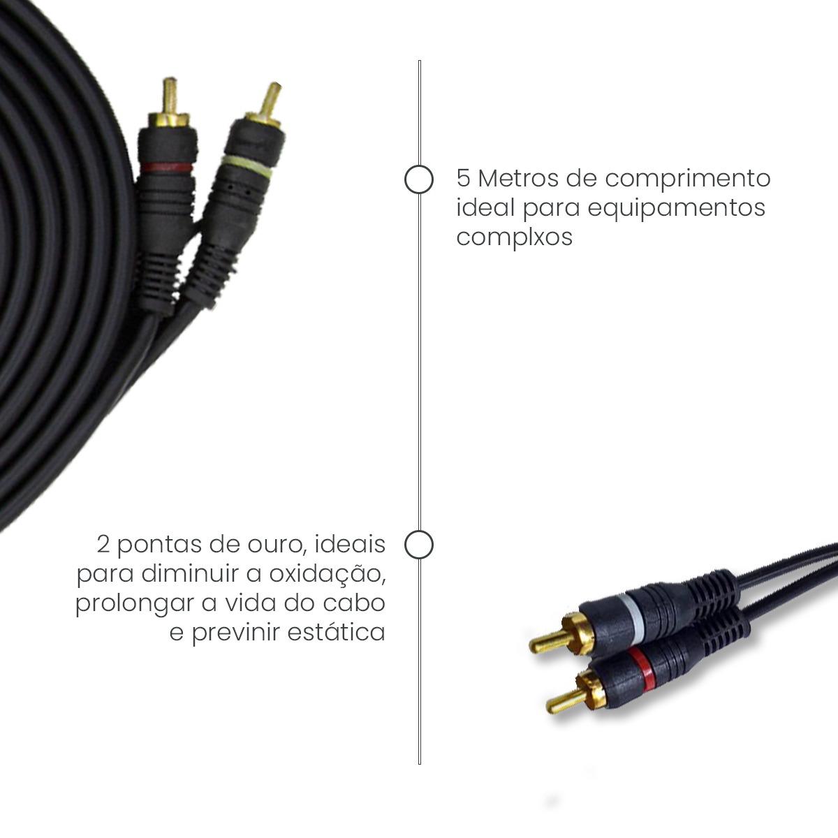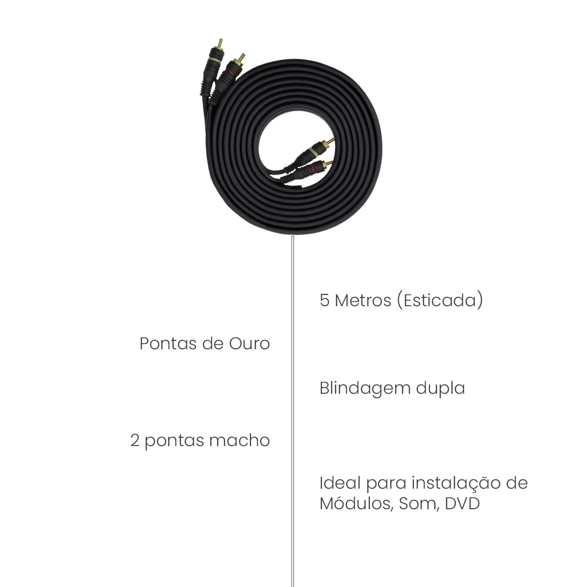 Cabo RCA Automotivo Permak Blindado Duplo 5 Metros Plug Ouro