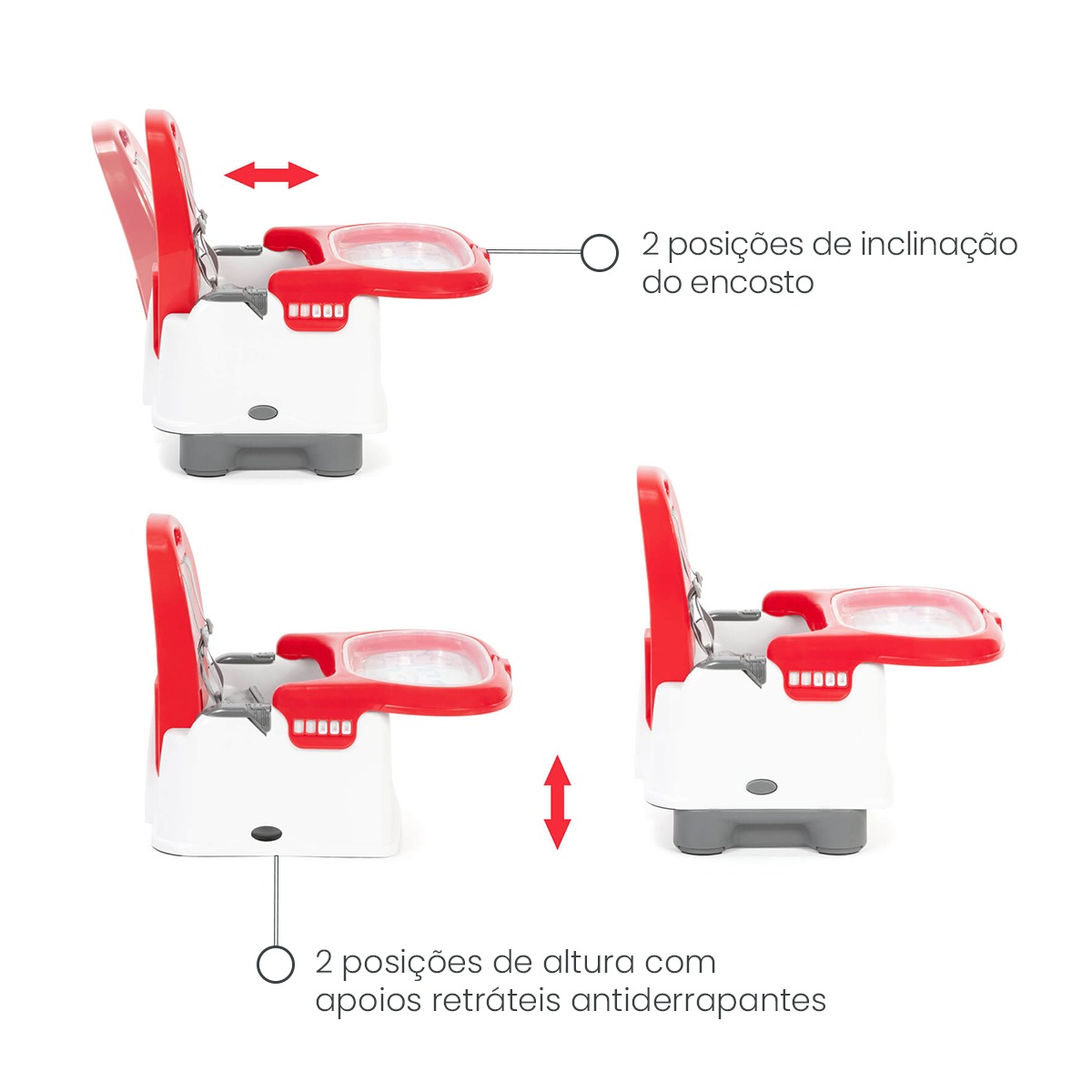 Fácil de transportar e instalar, permite que a criança participe das refeições com a família!
