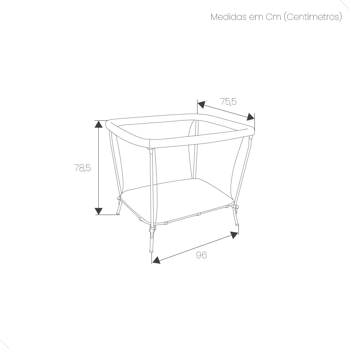 Altura Dobrado: 96 cm. Aberto: 78,5 cm.