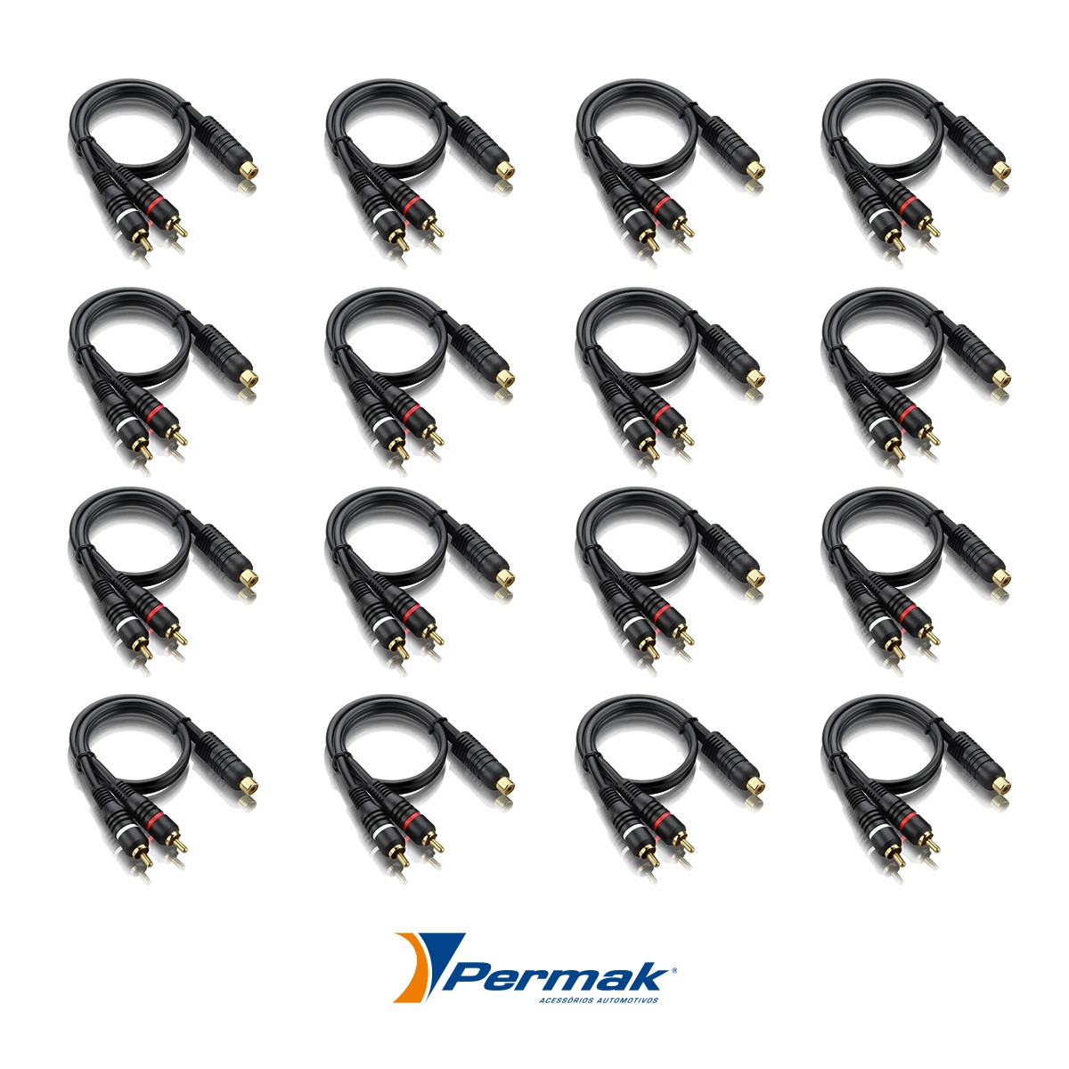 Kit com 16 Cabos de Áudio Y RCA 2 Macho 1 Fêmea - Permak - c