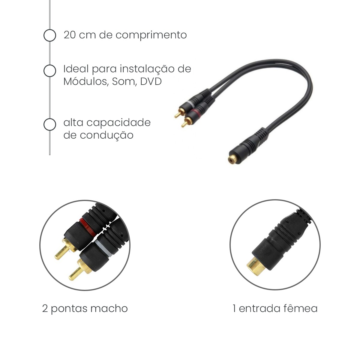 Kit com 4 Cabos de Áudio Y RCA 2 Macho 1 Fêmea