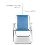A Cadeira Alta Alumínio é ideal para ser levada para praia, pois o alumínio garante maior durabilidade, mesmo em regiões litorâneas. Por ser mais leve que outros materiais, também é ótimo nas pescarias ou camping.