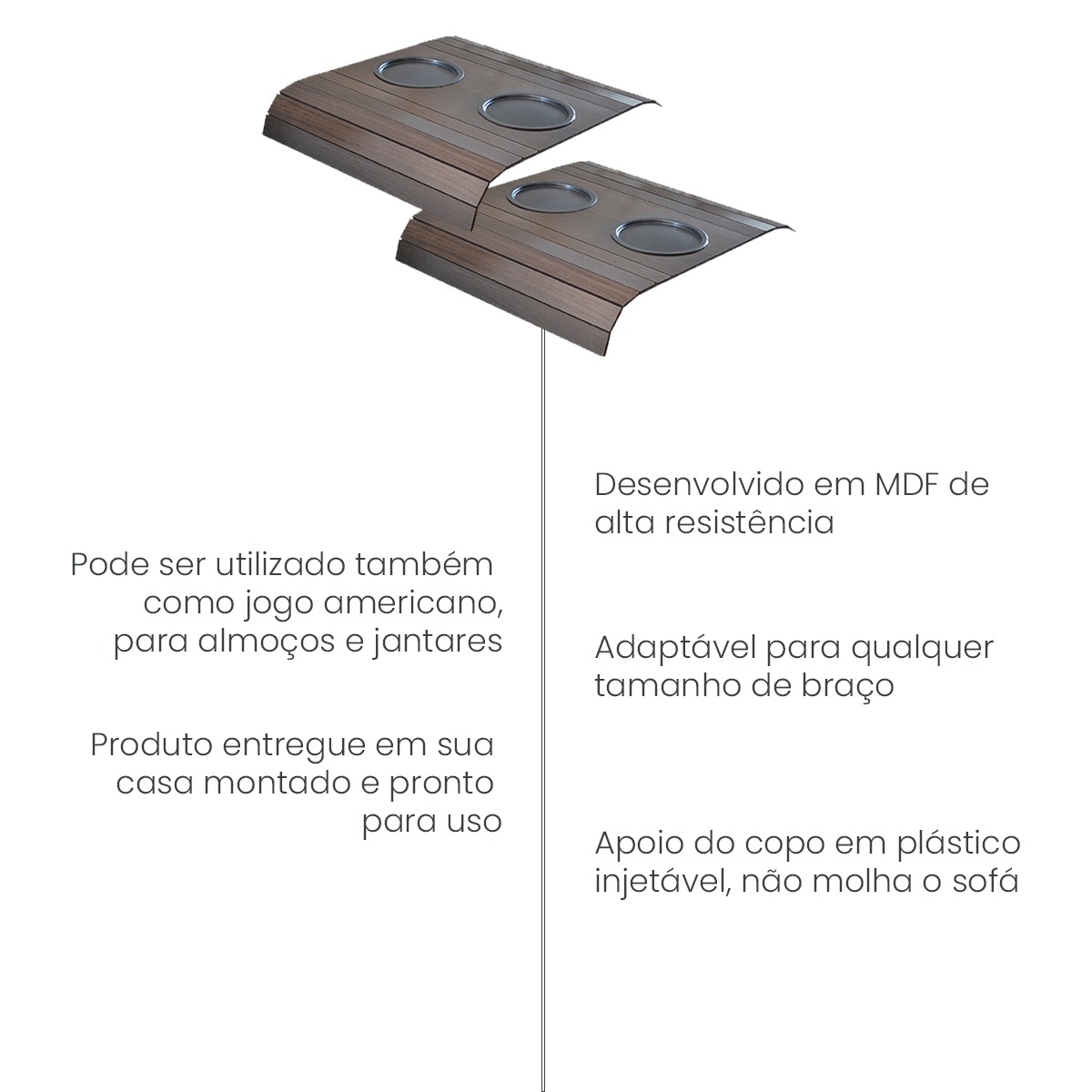 Quem nunca sentou em seu sofá e ficou procurando um lugar para apoiar o copo? Esta Bandeja para Sofá foi desenvolvida para suportar até dois copos e dar um toque de elegância nas sua decoração, renovando o estilo do seu sofá.