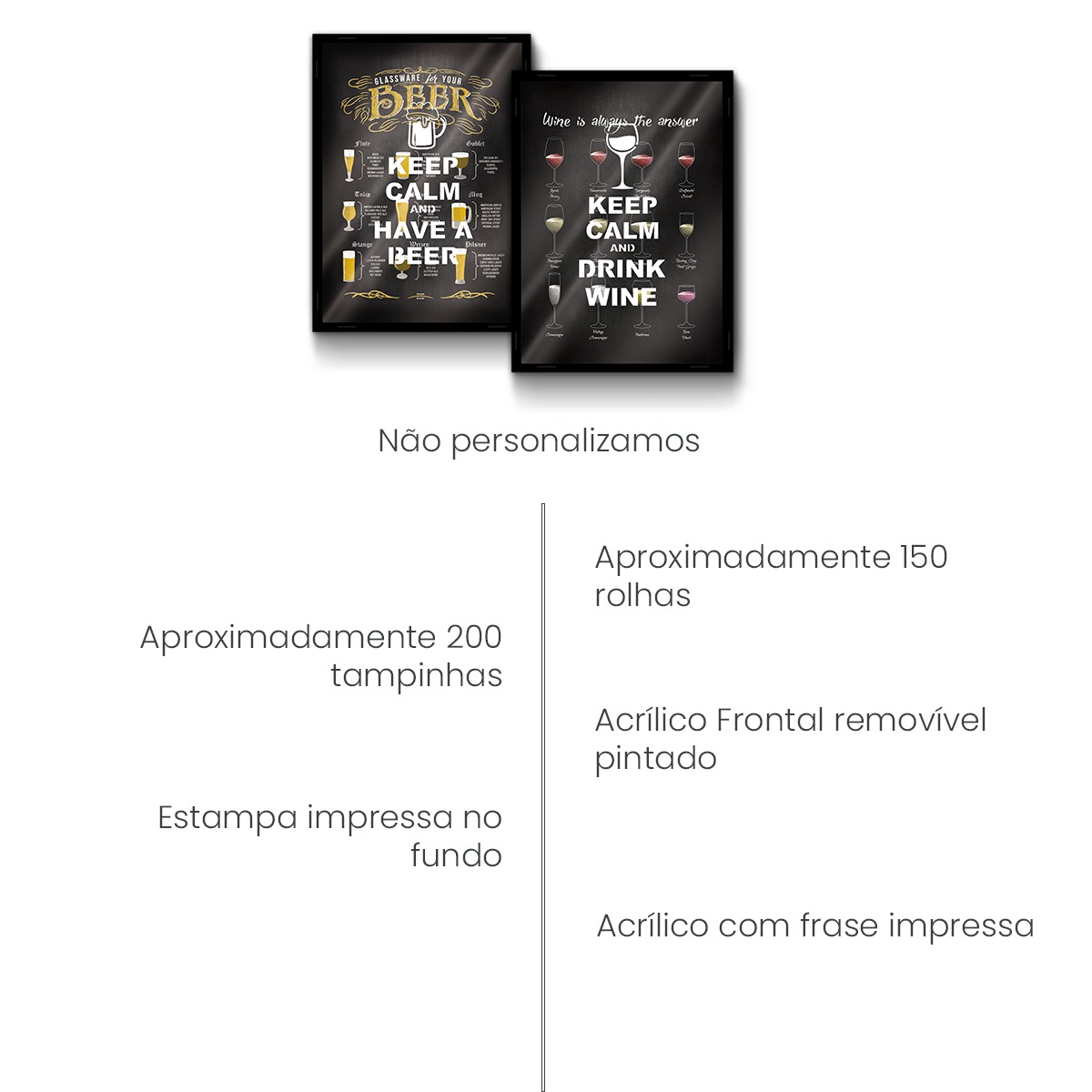 Seja o primeiro a avaliar “Kit com 2 Quadros Grandes: 1 Porta Rolha Vinho + 1 Porta Tampinha Cerveja”