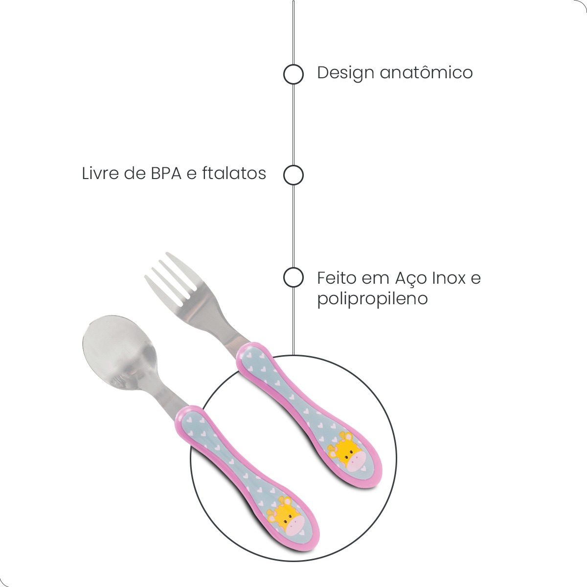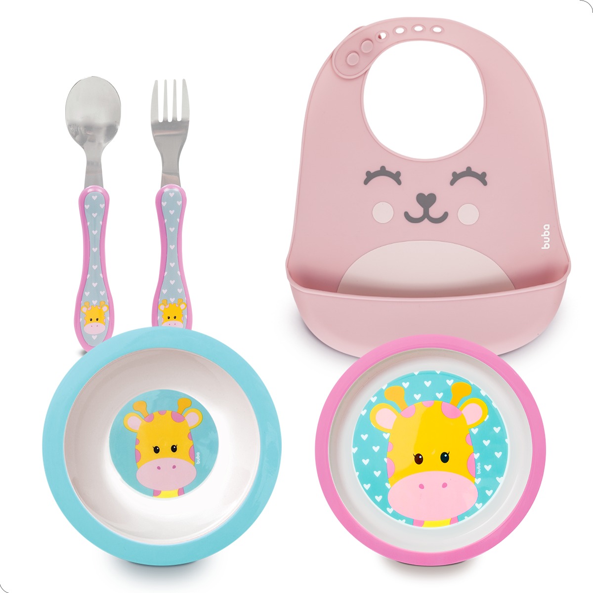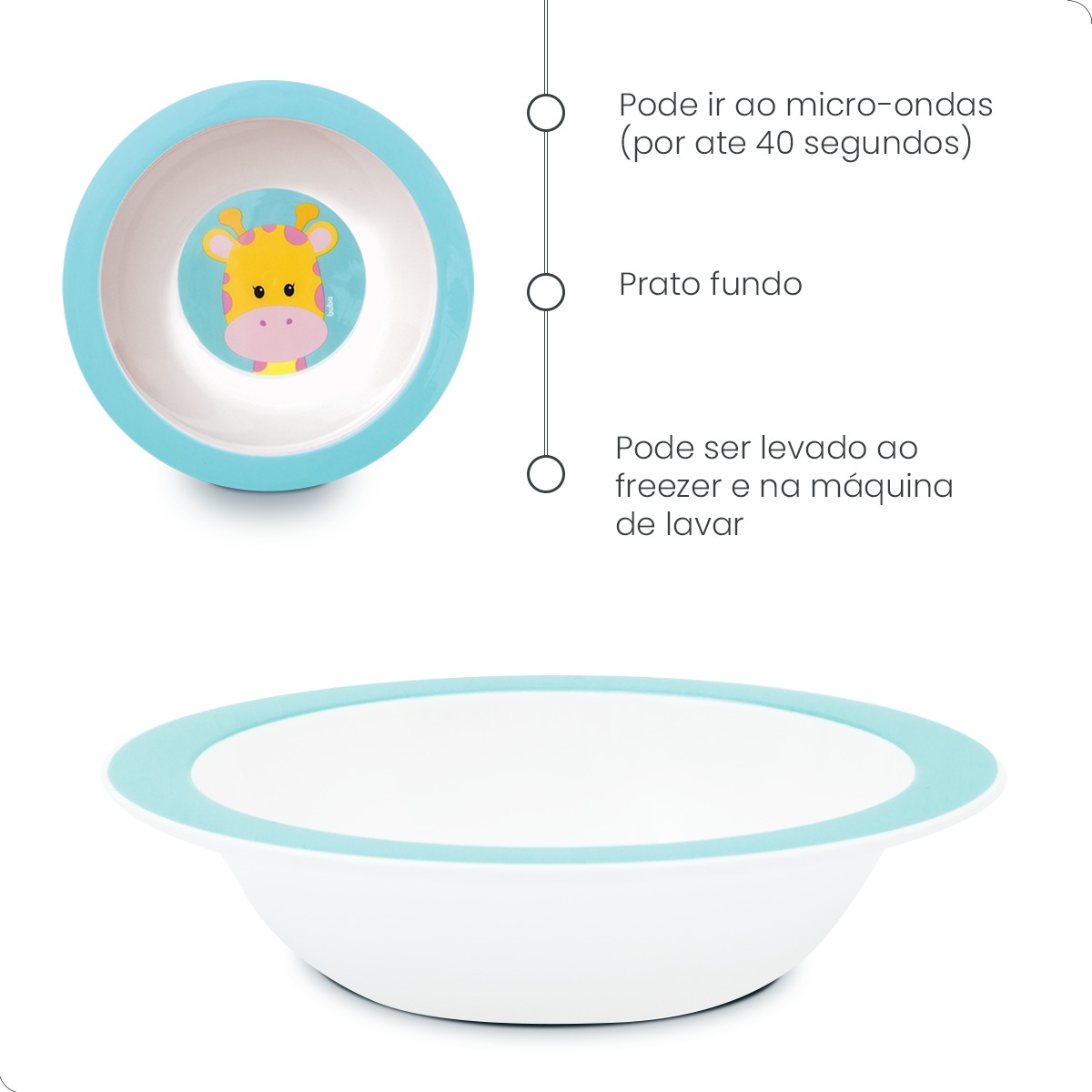 Kit com Pratinho Raso Animal Fun + Pratinho Bowl Fun + Kit Talher Girafa + Babador Gumy