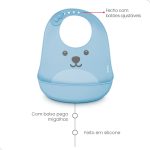 Kit com Pratinho Raso Animal Fun + Pratinho Bowl Fun + Kit Talher Leão + Babador Gumy Azul