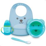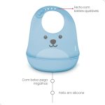 Kit com Pratinho Ursinho + Copo Com alça Removível + Colher + Babador Gumy Buba Azul