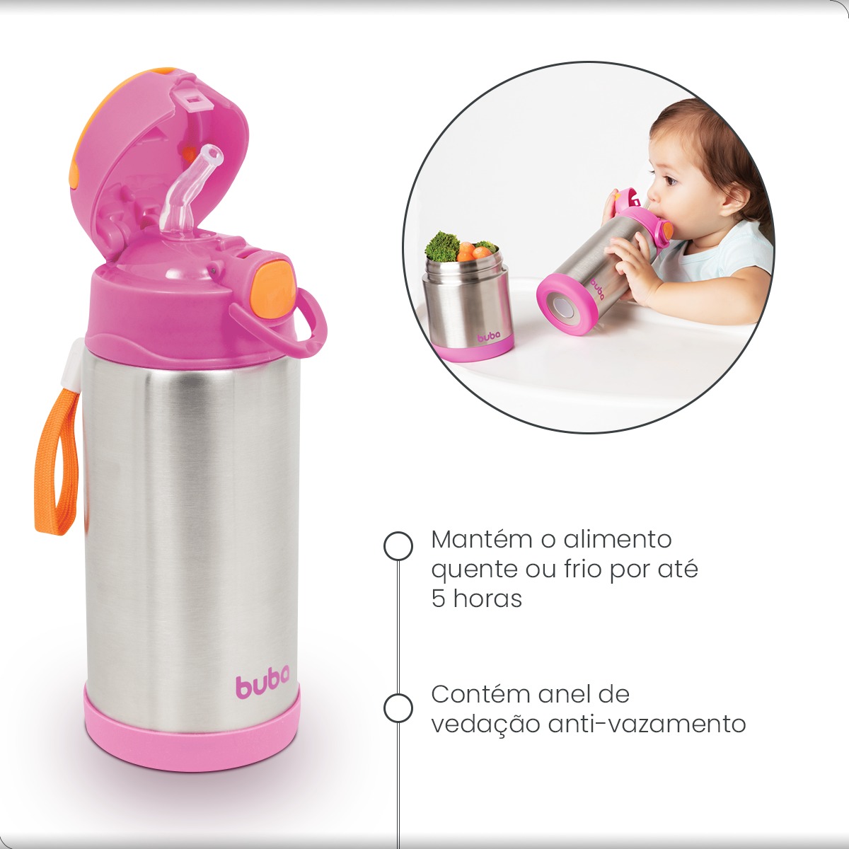 Kit Garrafa e Pote Térmico Inox Buba - Cor Rosa