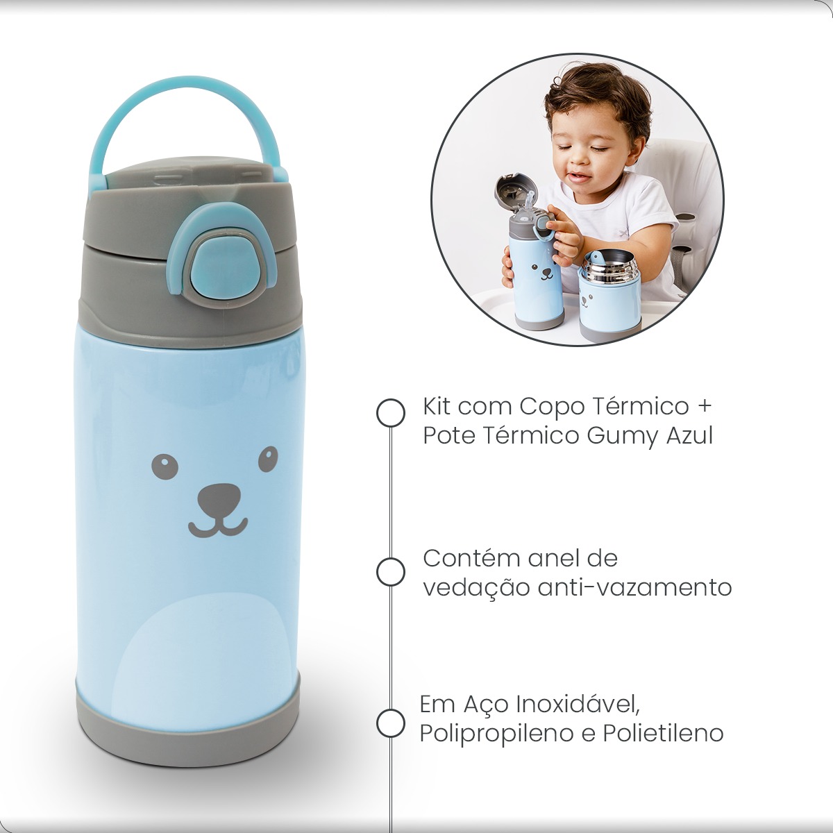 Kit Garrafa Gumy e Pote Térmico Buba Cor Azul