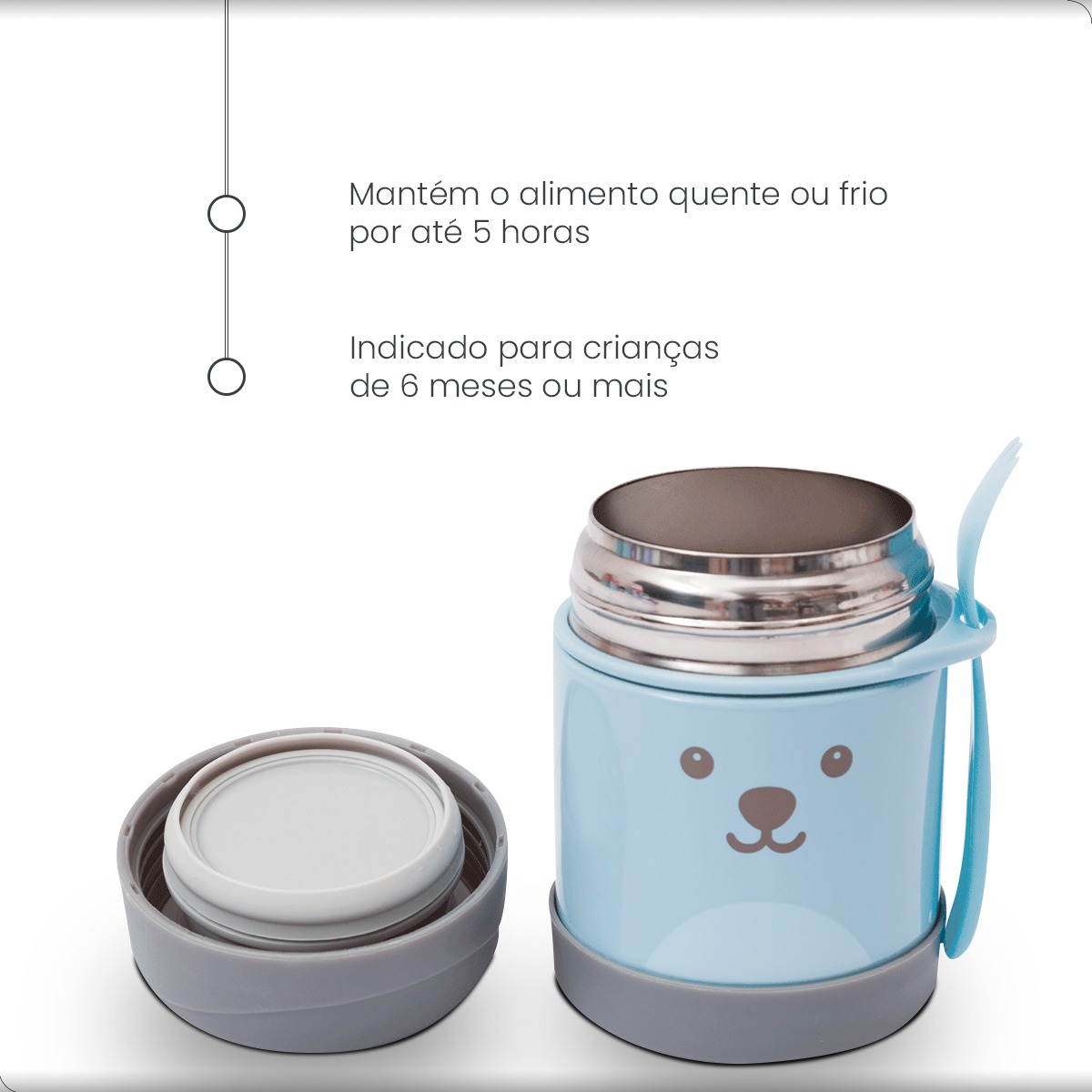 Perfeito para levar papinhas e frutinhas, mantendo elas na temperatura ideal sempre. A hora da papinha vai ficar completa com o Pote Térmico com Garfinho Gumy. Acompanha talher e é ideal para refeições fora de casa, pois ajuda a conservar a temperatura dos alimentos (quente ou fria) por mais de 5 horas. Produzido em aço inoxidável com parede dupla, é resistente e higiênico, ótimo para levar em passeios e viagens!