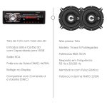 Kit Rádio FM + 1 par de Alto-falantes 5" Polegadas Som Automotivo + Antena Eletrônica – Cód. 6630 + 1050 + 100/H