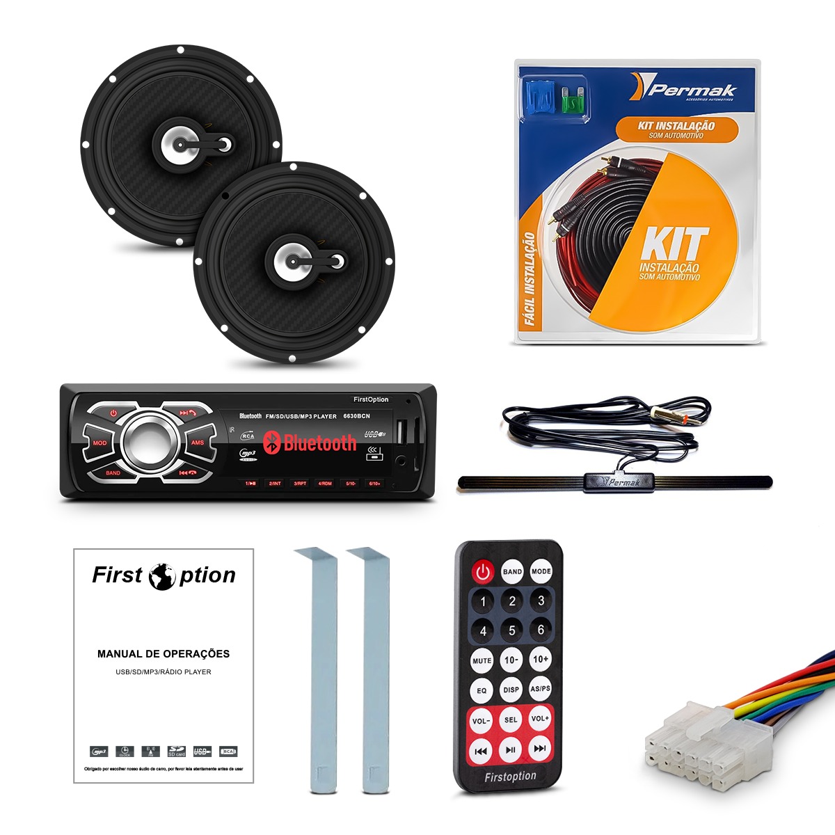 Kit Rádio 6630+ 1 Par 6″ + Antena + Kit Instalação