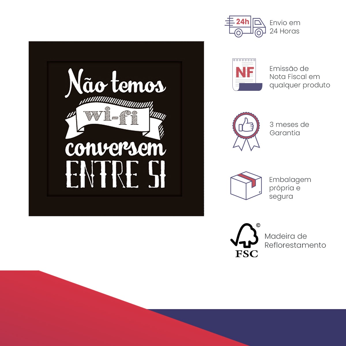 Placa Decorativa Moldura Quadrada - Frases - Não Temos Wifi