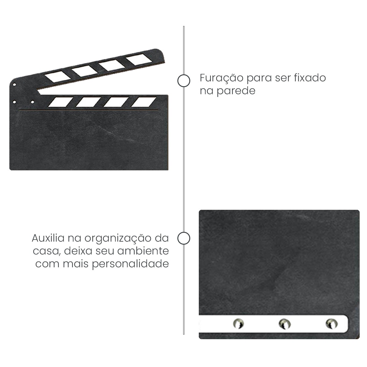 01 – Porta Chaves de Parede em MDF Claquete Lousa 2735