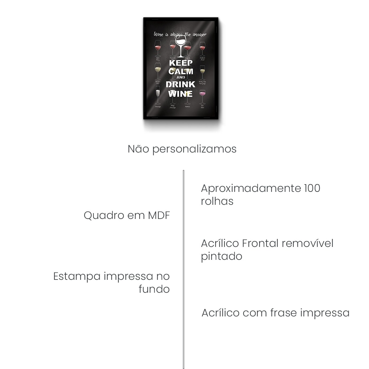 Quadro Porta Rolhas em MDF Tipos de Vinho Grande - cód. 2678