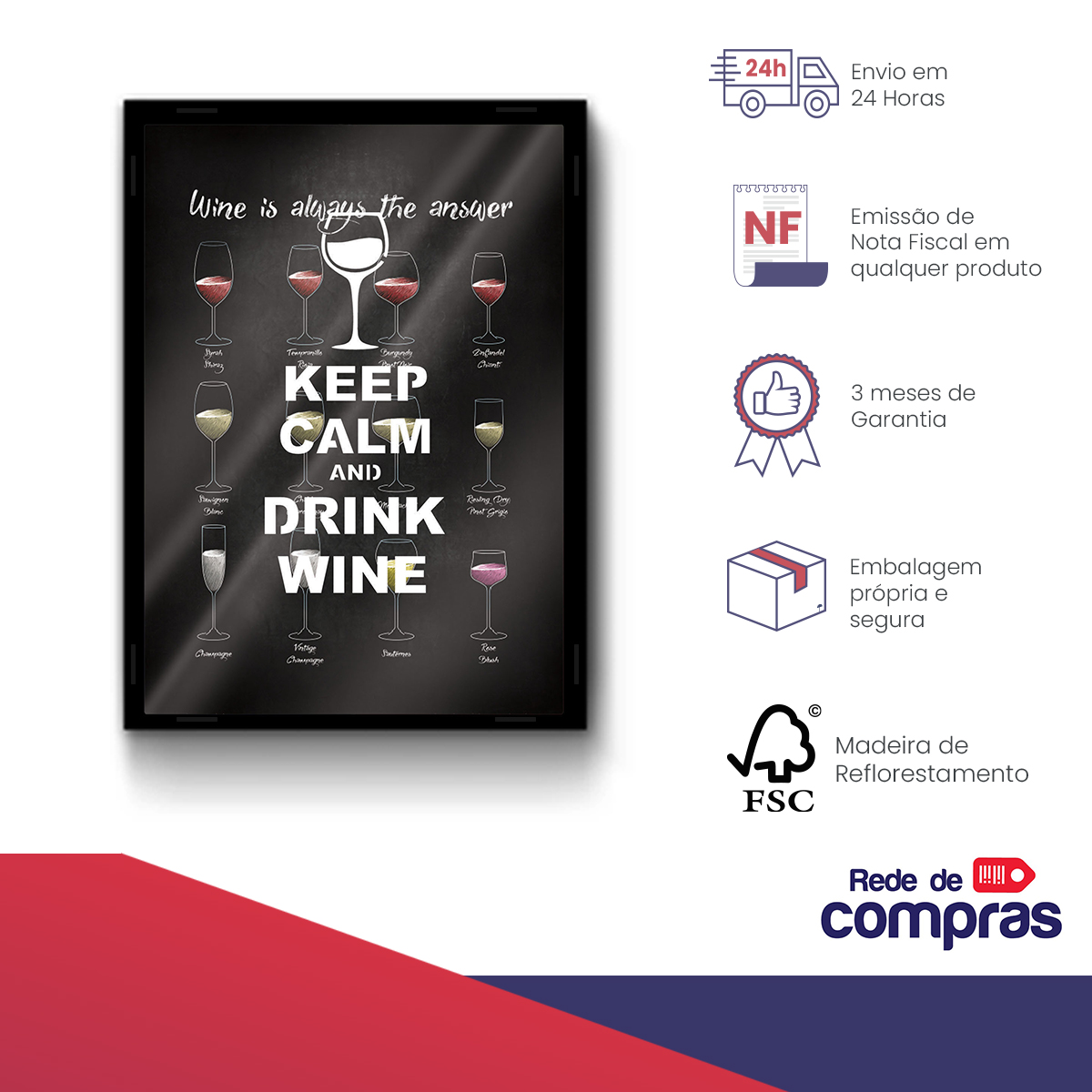 Quadro Porta Rolhas em MDF Tipos de Vinho Grande - cód. 2678